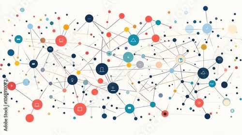 An illustration of machine learning algorithms visualized as a network of interconnected nodes and data points