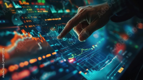 An investor s hand interacting with an augmented reality portfolio management tool