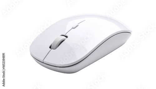 An isolated black wireless optical computer mouse is a modern office input device for communication and business
