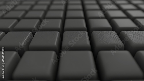 An isometric grid of repeating cubes in grayscale, with each cube displaying a consistent and structured pattern across the surface