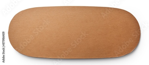 An oval brown kraft paper label on a white background with a clipping path, shot from above to create a space for adding text. The image features copy space.
