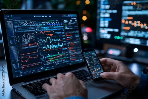 Analyst utilizes a computer within the management system to generate reports incorporating KPIs and metrics linked to a database