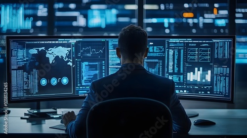 Analyst working with Business, Concept digital transformation technology strategy, Analytics and Data Management System on computer, make a report with KPI and metrics connected to database.