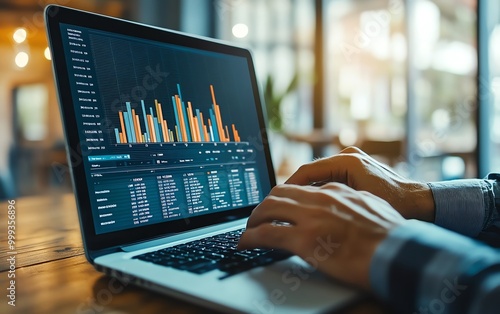 Analytics business concept Analyst use laptop analyzing sales data and financial growth graph chart report database