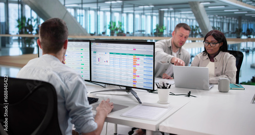 Analyzing Billing Reports With Spreadsheet Software: Diverse Business Team