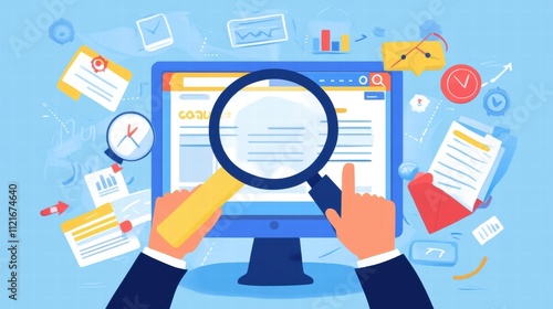 analyzing data and business goals on computer screen