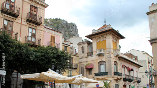 ancient buildings at garibaldi square in cefalù in sicily (italy)