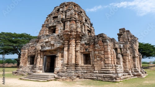 Ancient Stone Temple Ruins Under a Bright Blue Sky