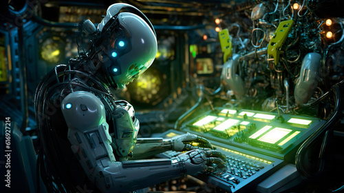 android robots are repairing a space station in orbit, ai generated