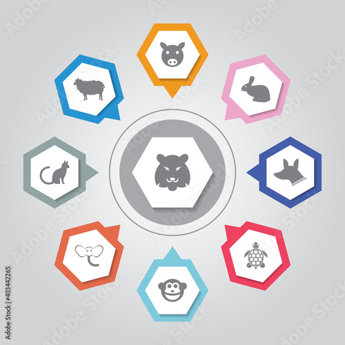 Animal Icon. Simple flat vector icons set on Gray Radiant background