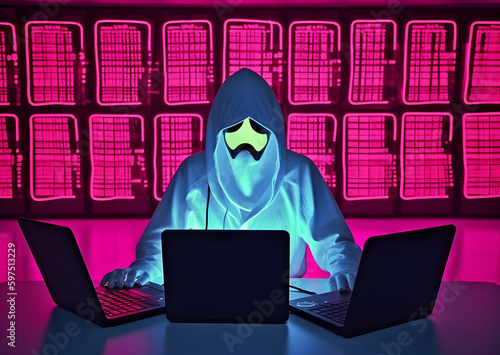 Anonymous hacker with hoodie. Concept of hacking cybersecurity, cybercrime, cyberattack, etc.