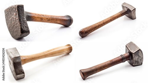 Antique hammers on white background
