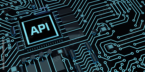 API - Application Programming Microchip.Interface. Software development tool. Business, modern technology, internet and networking concept.