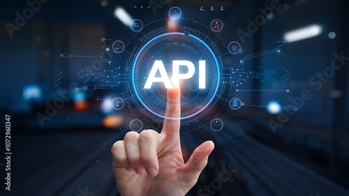 API application programming interface, a finger touch a hologram virtual interface that hologram of API, API integration, API development, JSON, API documentation,