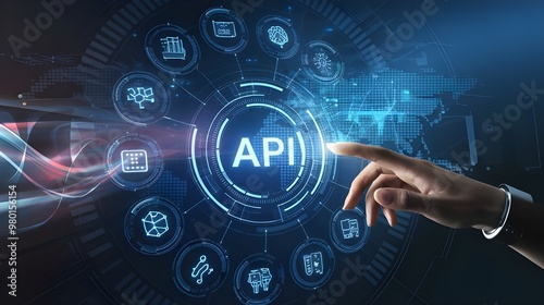 API, holographic interface displaying API icons, Application programming interface, Business technology, API integration,