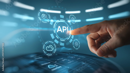 API interface, Application programming interface, Businessmen Interacting with a Futuristic API Interface, business technology, API integration