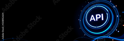 API technology concept, application programming interface, API integration, modern API design, API development visualization.