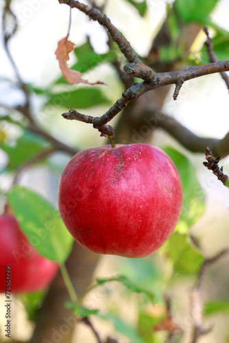 apple on a branch close-up