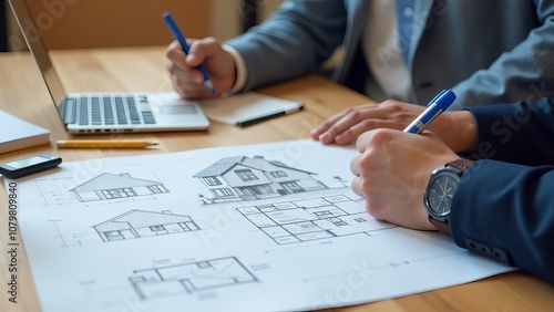 Architect Engineer Design Working on Blueprint Planning Concept. Construction Concept