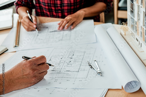 Architect Engineer Design Working on Blueprint Planning Concept. Construction Concept
