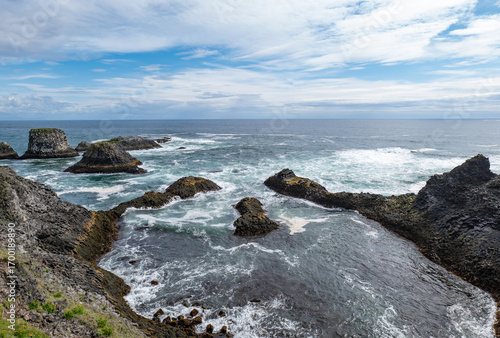 Arnarstapi basalt rocks in atlantic ocean in Iceland