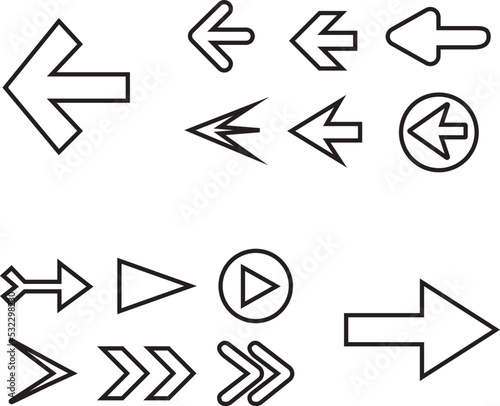 Arrow icon set isolated on white background. Trendy collection of different arrow icons in flat style. Creative arrows template for web site, mobile app, graphic design, ui and logo. Vector symbol