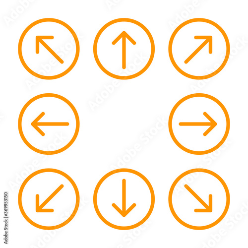 arrow line circle orange set for direction arrow pointer, arrows in circular strokes, arrows button simple, line arrow symbol in circle for ui app, circular arrowhead symbol for button interface