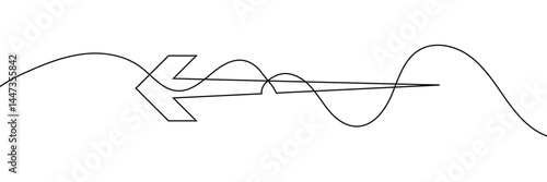 Arrow pointing left, line continuous drawing vector. One line Arrow pointing left, vector background. Arrow pointing left, icon. Continuous outline of a Arrow pointing left.