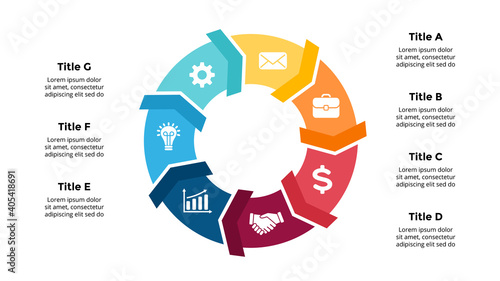 Arrows Vector Infographic. Presentation slide template. Circle diagram. Chart with 7 options.