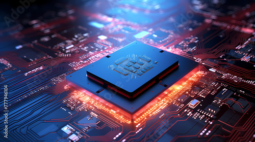 Artificial intelligence 3D rendering circuit board technology background processor CPU and GPU