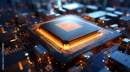 Artificial intelligence 3D rendering circuit board technology background processor CPU and GPU