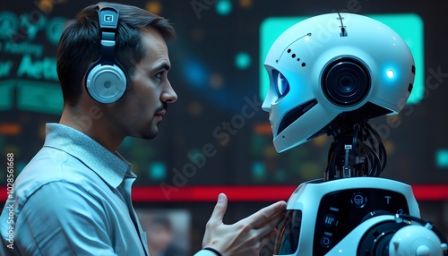 Artificial Intelligence (AI) chatbot chat with man using technology smart robot AI, artificial intelligence by entering command prompt for generating something