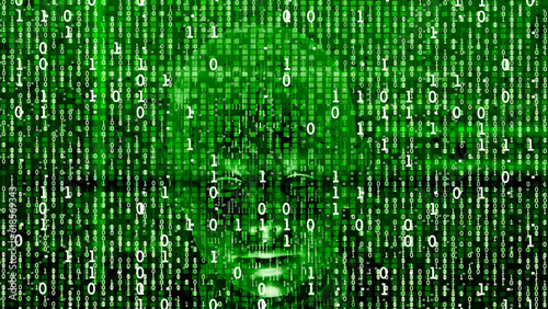 Artificial intelligence and big data concept. Machine learning. Binary code background.