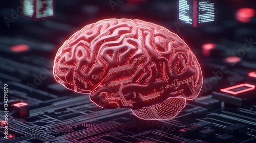 Artificial intelligence brain network and database concept. Futuristic brain illustration with circuit-like patterns.