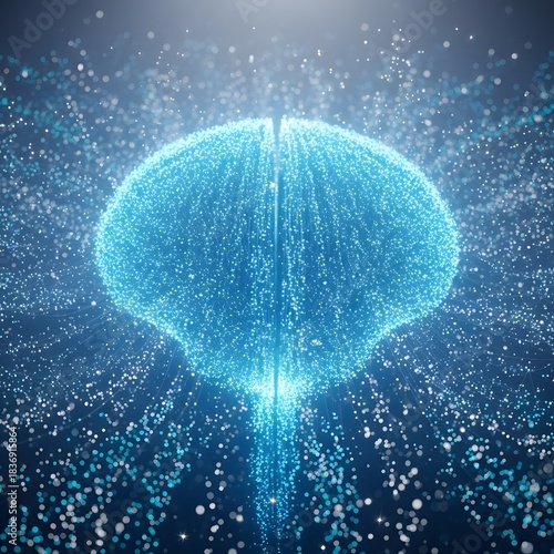 Artificial Intelligence Brain with Glowing Digital Particles AI Big Data Machine Learning and Future Technology Concept