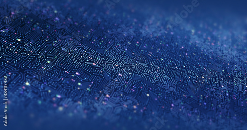 Artificial Intelligence Circuit Board. Transmitting High Speed Data. Computer And Technology Related 3D Illustration Render