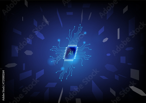 Artificial intelligence circuit line style. AI micro processor unit storage database. Smart network digital technology. vector concept background.