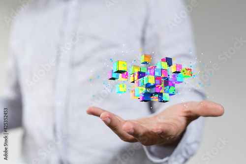 Artificial Intelligence Cloud technology. Integrated digital web concept background
