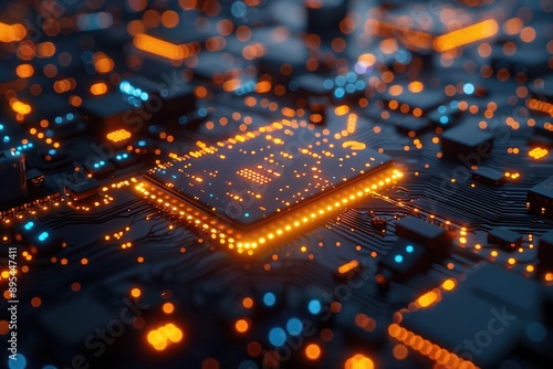 Artificial Intelligence Concept: Abstract representation of AI algorithms and machine learning processes with digital circuits and binary code patterns