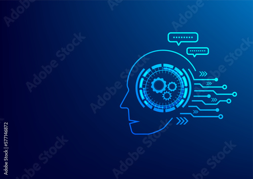 Artificial intelligence concept. Chat gpt, Chat bot. Cyber and circuit board human brain. Blue background technology.