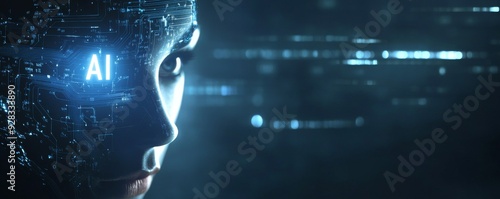 Artificial intelligence concept with human face and futuristic circuit board elements