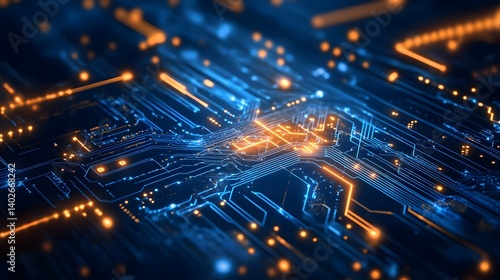 Artificial intelligence core with glowing neural network and futuristic circuitry.