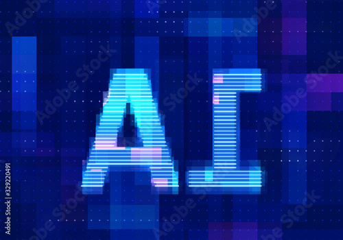 Artificial intelligence icon AI technology blue background. Abstract digital machine learning with digital future design concept.