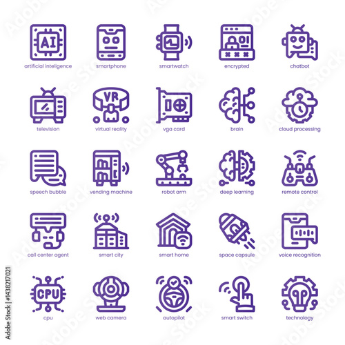Artificial Intelligence Icon pack for your website, mobile, presentation, and logo design. Artificial Intelligence Icon line basic color design. Vector graphics illustration and editable stroke.