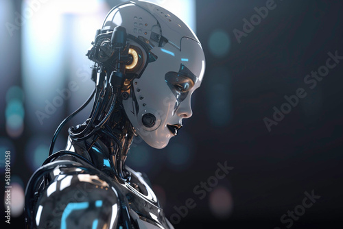Artificial intelligence robot android receptionist working in an office. AI job replacement. Generative AI