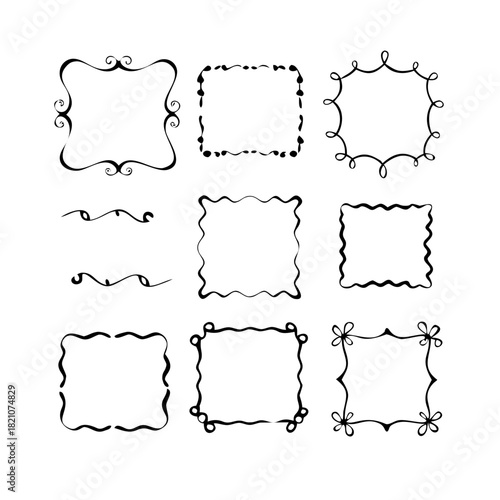 Artistic hand-drawn decorative frames and border set