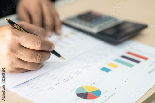 Asian accountant working and analyzing financial reports project accounting with chart graph and calculator in modern office : finance and business concept.