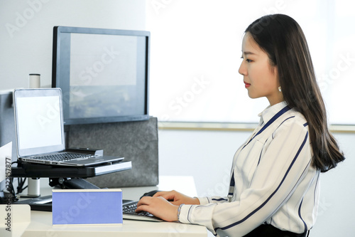 Asian female white collar worker using computer