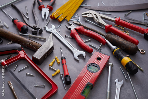 Assorted hand tools for building and construction