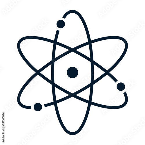 Atom structure, educational institution process. Vector linear icon isolated on white background.
